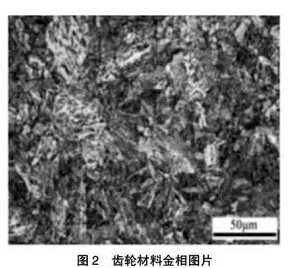 通过选择齿轮的中间部位进行取样分析,将齿轮表面渗碳等加工工艺参数影响忽略不计,通过化学分析得到表1。
