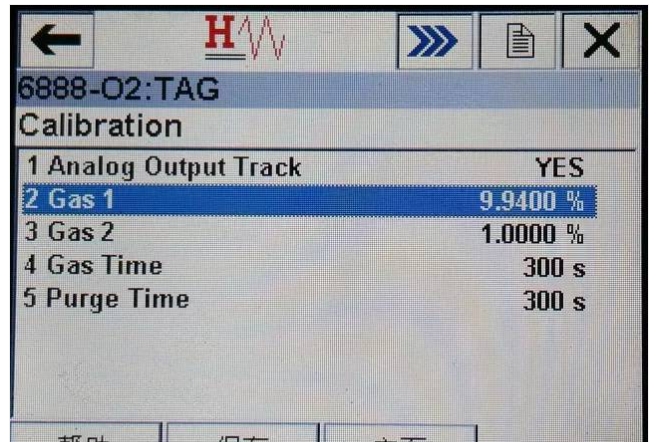 Gas 2. 氧气浓度为1.00%的标气值;