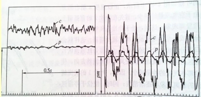 正常工况下与喘振工况下压力与气流速度变化的波形示意图