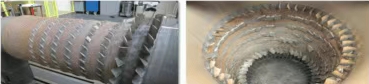 压缩机转子叶片(左)和导向叶片(右)可能被扭曲或折断