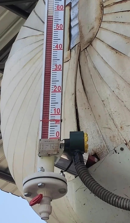 它基于连通器原理,根据浮力原理和磁性耦合作用研发而成。当被测容器中的液位升降时,浮子内的永久磁钢通过磁耦合传递到磁翻柱指示面板,使红白翻柱翻转180°,当液位上升时翻柱由白色转为红色,当液位下降时翻柱由红色转为白色,面板上红白交界处为容器内液位的实际高度,从而实现液位显示。