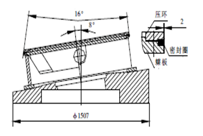 2.压环、全金属密封环和蝶板按图纸装配,将蝶板组合件工装用螺栓紧固在阀体工装上,然后再将蝶板组合件装夹其上。立车刀杆旋转一夹角、车压环、密封圈和蝶板至磨削尺寸。